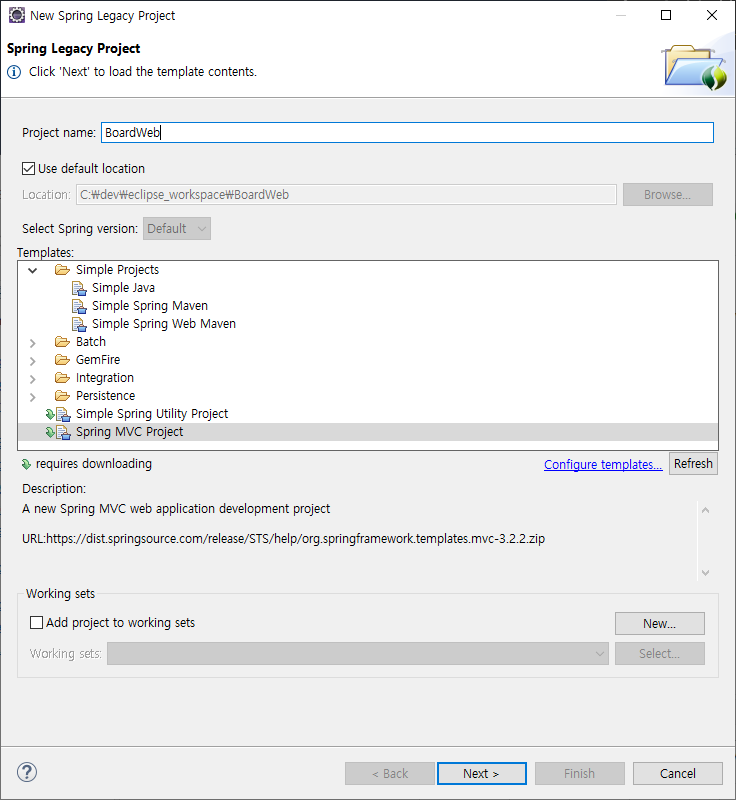 Templates 가 안보였는데..(비활성), 이클립스 업데이트 누르니 다시 보인다.....