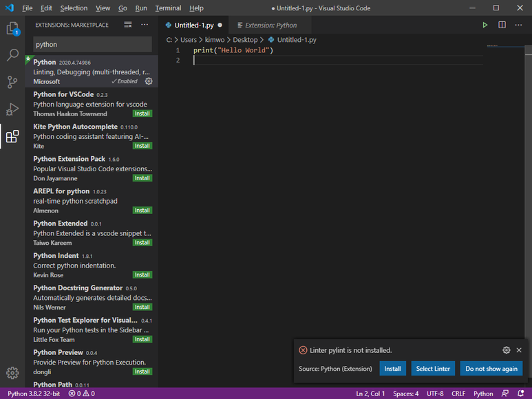 3. VS CODE 내 Python 개발환경 구축